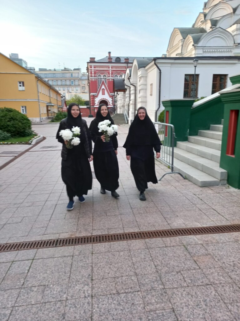 Они принесли ко кресту и образу чтимой святой выращенные в обители белые пионы. Почтив святую молитвенно и поклонившись кресту, сестры попросили ее помощи, помолившись за обитель и всех, кто ей близок, за наше Отечество и тех, кто его защищает.