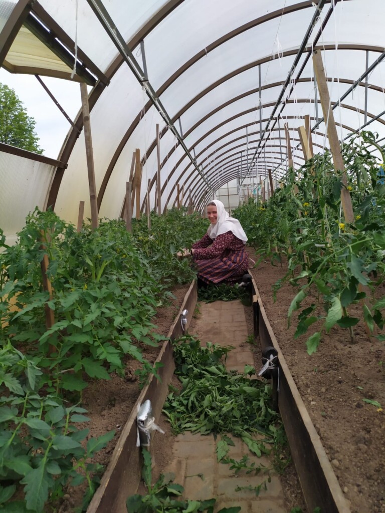 На подворье может трудиться небольшое количество сестер, поэтому работы проводятся в меру возможности. Благодарим Бога за то, что Он совершает все по Своей всеблагой воле и помогает посадить и вырастить небольшой, но так необходимый обители урожай!