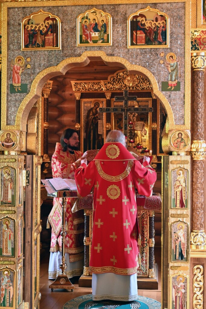 Его Святейшеству сослужил личный секретарь Святейшего Патриарха Кирилла епископ Раменский Алексий.