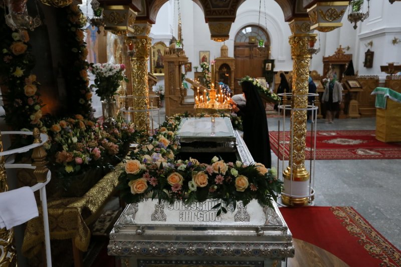 Во время крестного хода в процессии следовали королева эллинов, великий князь Константин Константинович, великая княгиня Елизавета Феодоровна. Раку внесли в монастырский собор, а на следующий день — в Спасский храм, основанный самой преподобной.