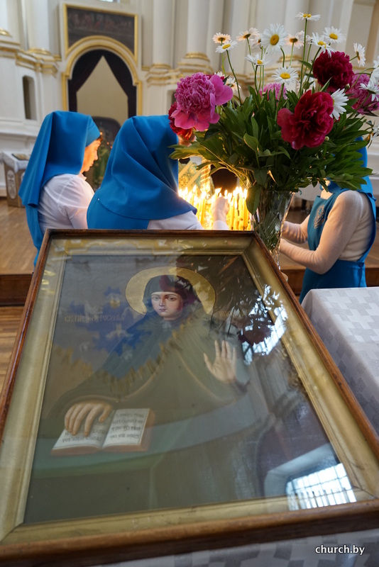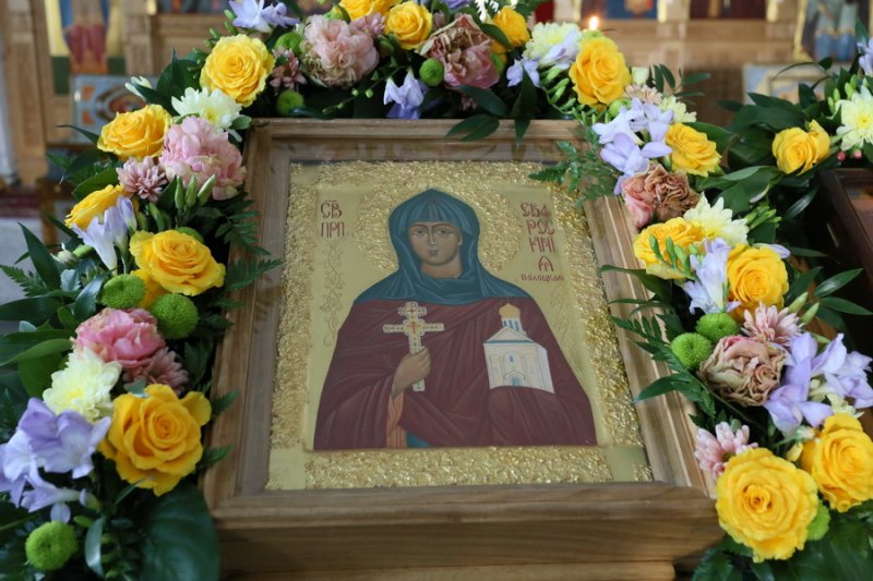 В нашем соборе Рождества Пресвятой Богородицы находится икона преподобной Евфросинии Полоцкой с частицей ее св. мощей. Наша обитель почитает преподобную Евфросинию как наставницу монашествующих, покровительницу женского монашества и носительницу духа Христова - духа кротости, смирения и любви. Молитвы и благодатная помощь святой особенно чувствуются с того времени, как Матушка Игумения несколько раз побывала в Спасо-Евфросиниевом Полоцком монастыре на торжествах в честь преподобной Евфросинии и на монашеских конференциях. С тех пор святая Евфросиния нам особенно близка.