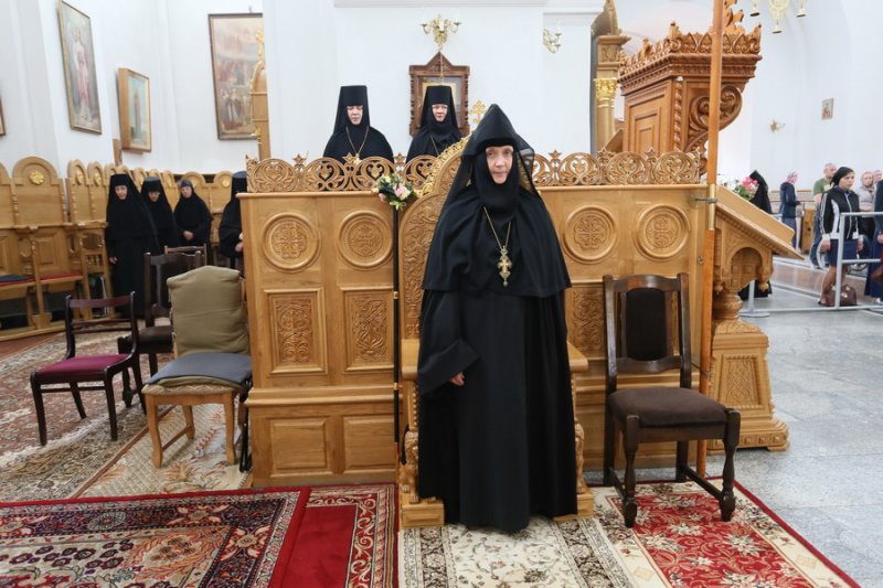 Заместитель Председателя СОММ настоятельница Зачатьевского ставропигиального женского монастыря игумения Иулиания (Каледа) и член Коллегии СОММ настоятельница нашей обители игумения Викторина (Перминова) в Спасо-Евфросиниевском Полоцком женском монастыре. 21 июня 2018 г. Синодальный отдел по делам монастырей и монашеству Белорусского экзархата