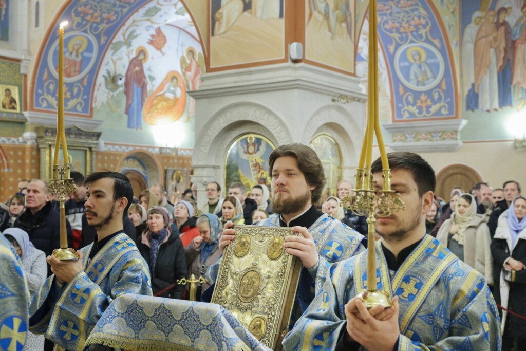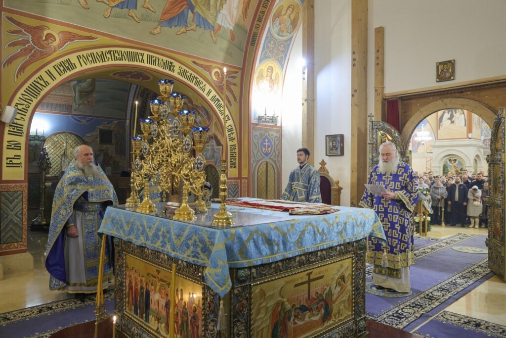 Во время праздничных богослужений для поклонения были вынесены частицы мощей святых праведных Иоакима и Анны.