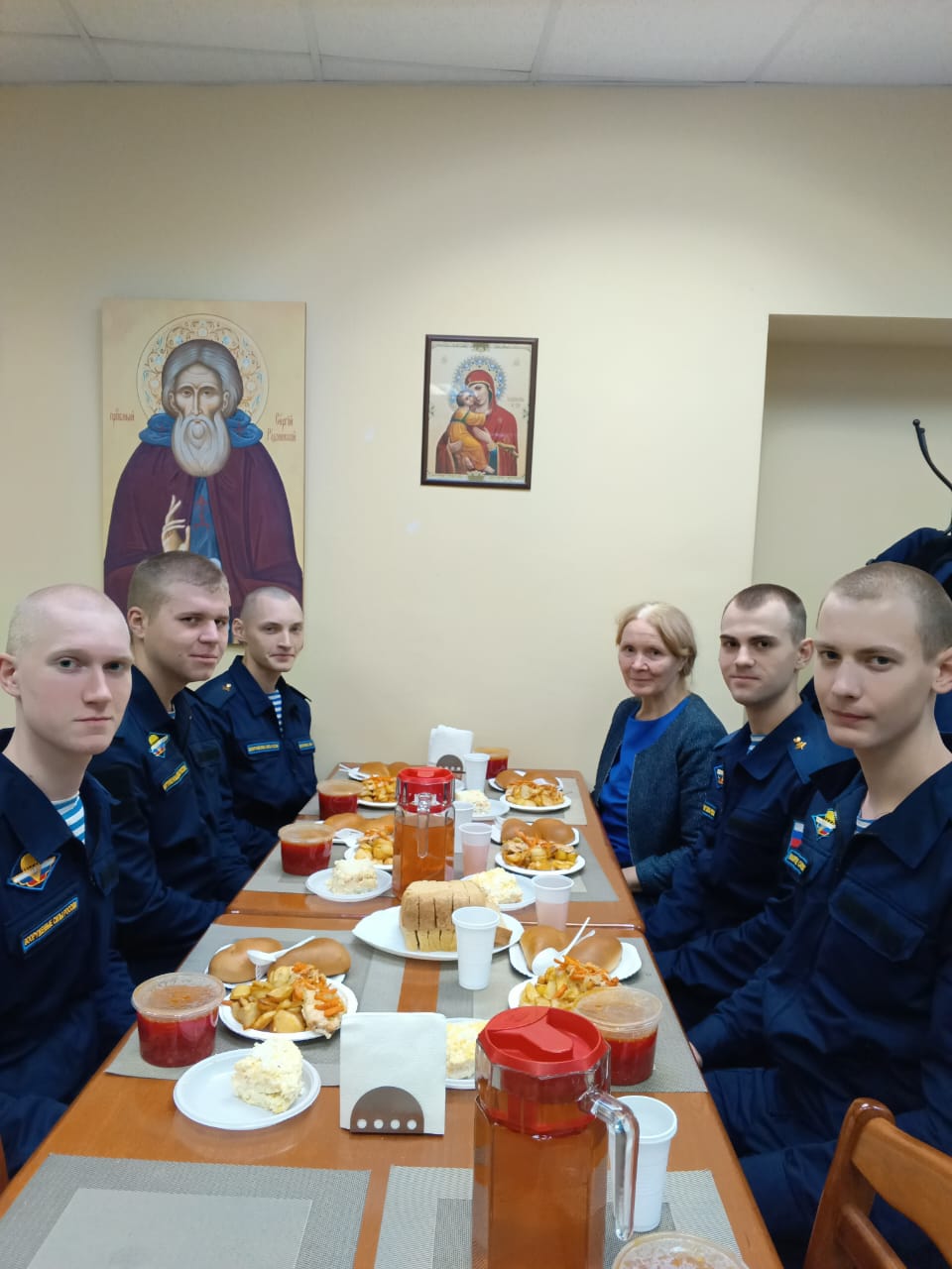 29 декабря 2024 года, в Неделю святых праотцев и день памяти чтимой святой монастыря преподобной Софии Суздальской, а также в памятный день преставления духовника обители протоиерея Бориса Николаева, военнослужащие срочной службы ВДВ посетили наш монастырь. В помещении воскресных и певческой школ прихожанкой обители Людмилой Земсковой для них был организован показ православного фильма, после чего нашим гостям была предложена приготовленная сестрами трапеза, во время которой состоялась духовная беседа.