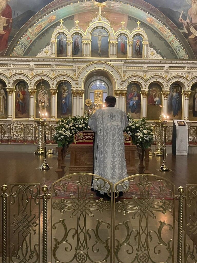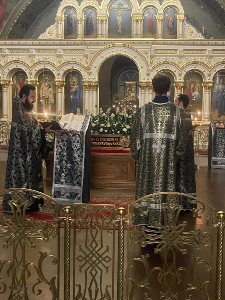Чтение часов и Изобразительных предварило праздничную Вечерню с 16-ю паремиями, где приведены пророчества и прообразы Воскресения Христова, и Литургию святителя Василия Великого. Молящиеся слышали особенные песнопения, которые поются только раз в году - "Воскресни, Боже", "Да молчит всякая плоть человеча" и др.