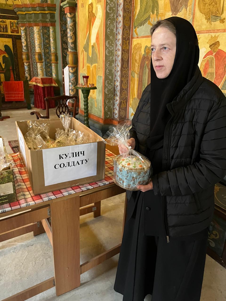 26 апреля 2025 года, в субботу Светлой седмицы, наша обитель передала 100 куличей для военнослужащих срочной службы ВДВ. На Страстной неделе монастырь отправил более 2000 куличей в зону СВО, на передовую, поэтому мы не смогли подарить куличи нашим ребятам, проходящим срочную службу. Но мы о них не забыли, и сегодня смогли передать это традиционное пасхальное угощение, которое сестры пекли с любовью и молитвой.