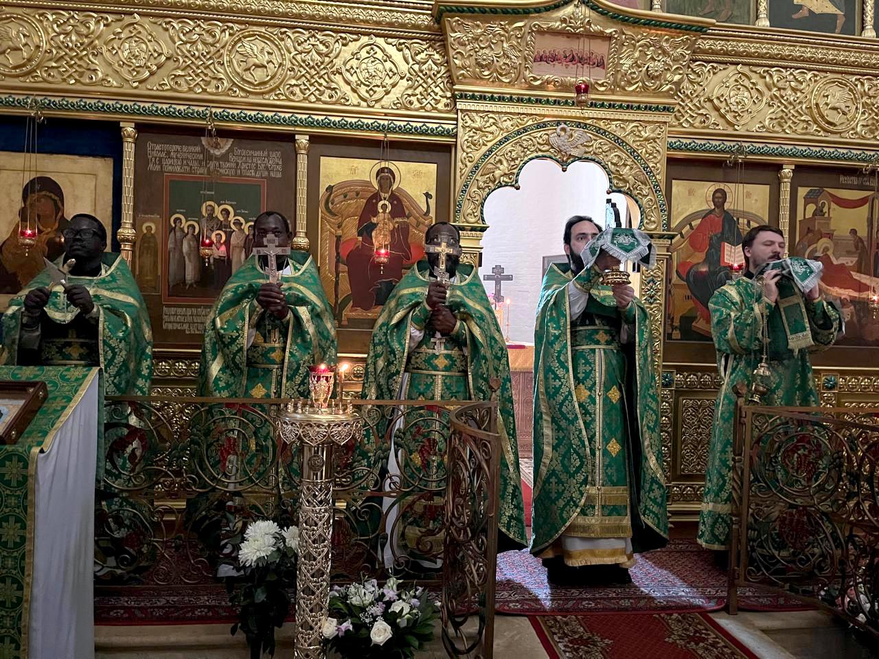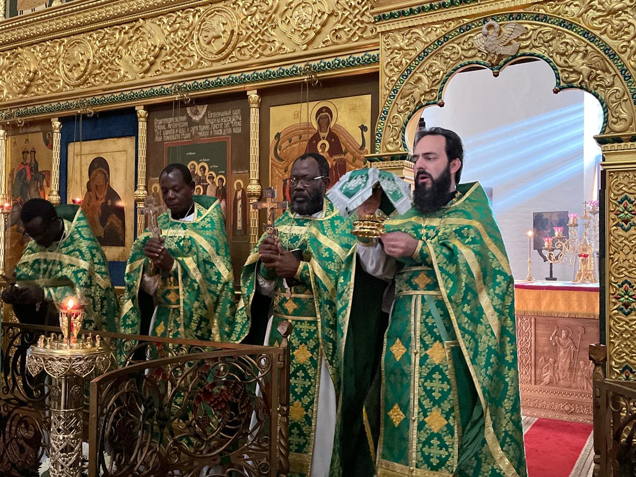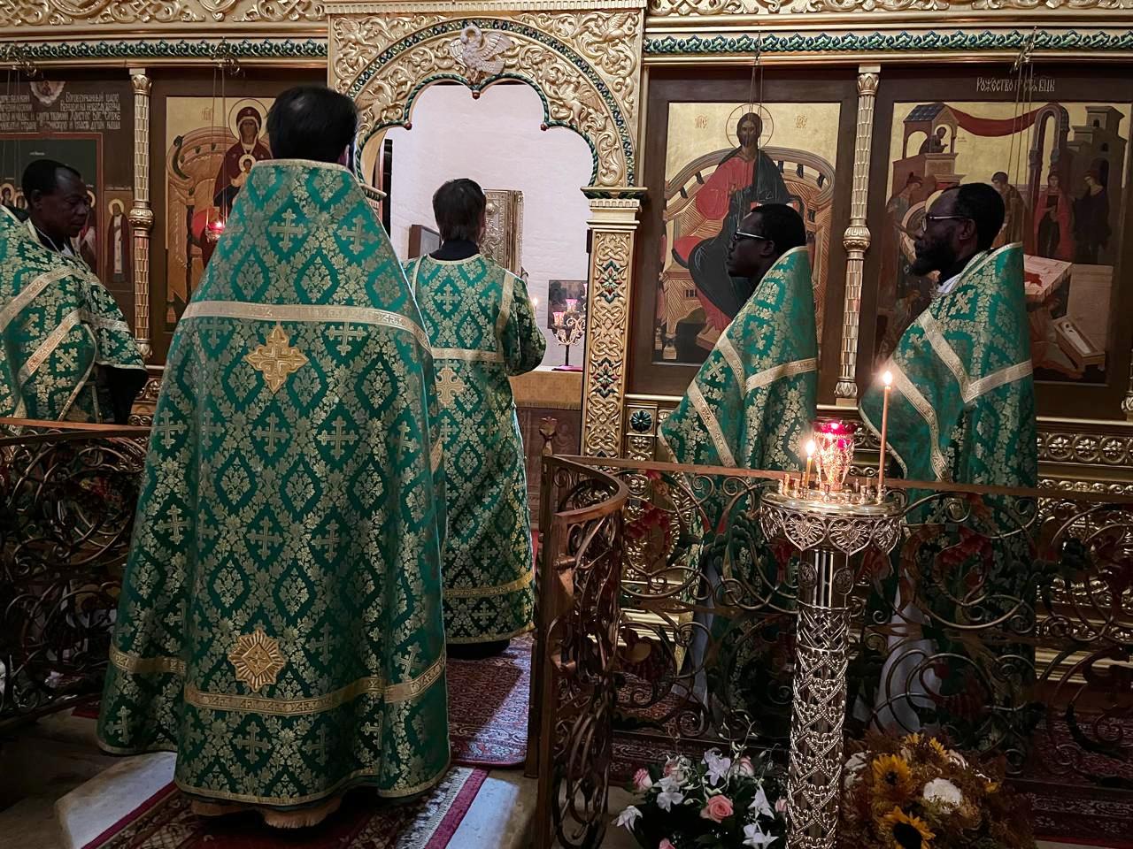15 сентября 2025 года, в день памяти первоначальников русского монашества преподобных Антония и Феодосия Печерских, священнослужители Патриаршего Экзархата Африки совершили Божественную Литургию в нашем монастыре. Наши гости иерей Виктор Окелло (Уганда), иерей Павел Балейджуса (Уганда), иерей Стефан Нвосе (Нигерия) продолжают проходить богослужебную практику в нашей обители, и им помогает в этом наше монастырское духовенство. За богослужением молились сестры и прихожане монастыря.