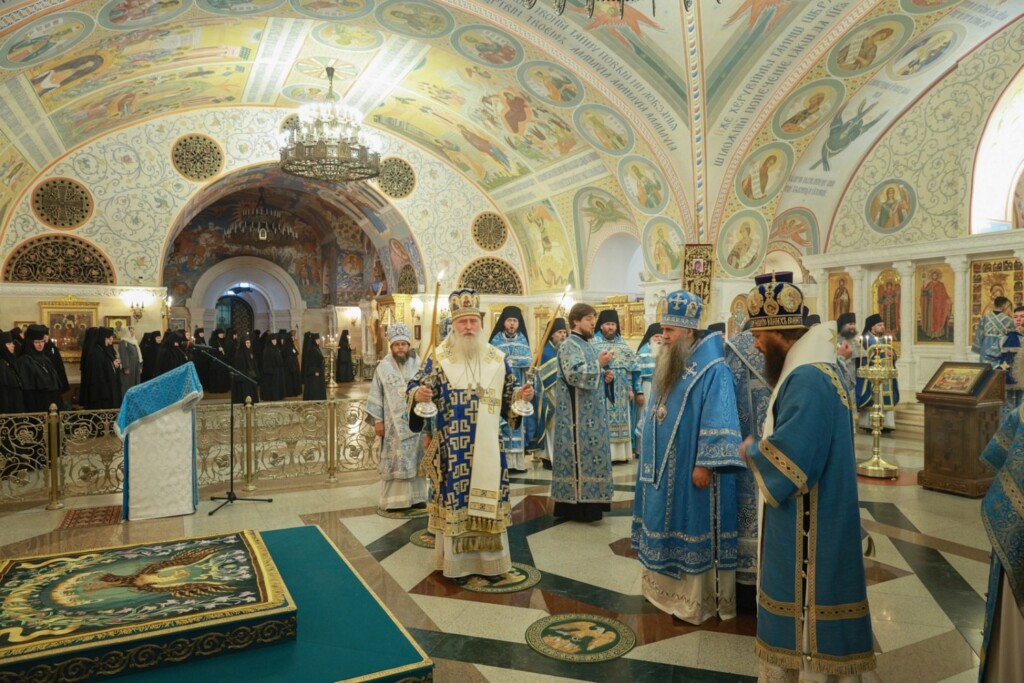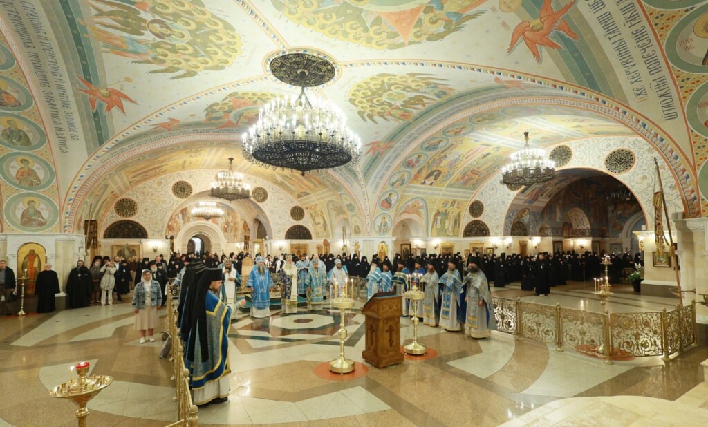 Богослужение совершили: председатель Синодального отдела по монастырям и монашеству, наместник Донского ставропигиального мужского монастыря г. Москвы митрополит Каширский Феогност; председатель Комиссии по организации жизни монастырей и монашества Межсоборного присутствия Русской Православной Церкви митрополит Нижегородский и Арзамасский Георгий; митрополит Саранский и Мордовский Зиновий; митрополит Волгоградский и Камышинский Феодор; епископ Ардатовский и Атяшевский Мелетий; столичное духовенство.