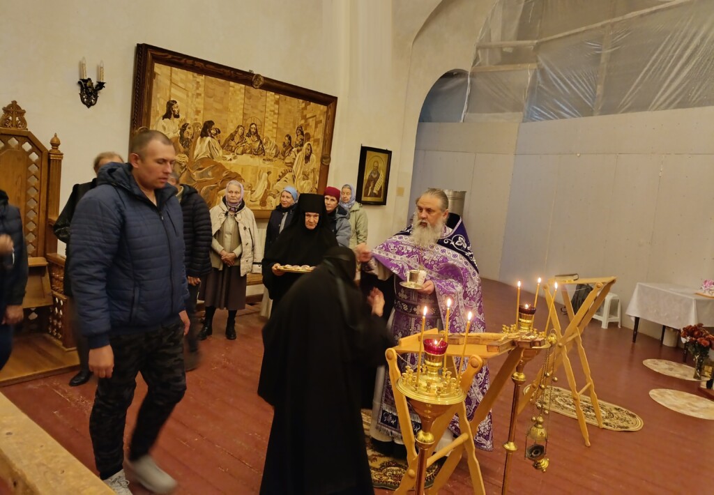 Вечером 26 сентября 2025 года, в канун праздника Воздвижения Честного и Животворящего Креста Господня, на подворье нашей обители отслужено всенощное бдение, которое совершил священнослужитель монастыря протоиерей Серафим Хайруллин. В храме молились трудящиеся на подворье сестры и наши прихожане. Были совершены Великая вечерня с литией и утреня, завершившаяся выносом Креста.