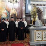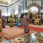 Богослужебные песнопения исполнили Патриарший и Камерный хоры Храма Христа Спасителя (регенты ― И.Б. Толкачев и С.С. Сидоренко).