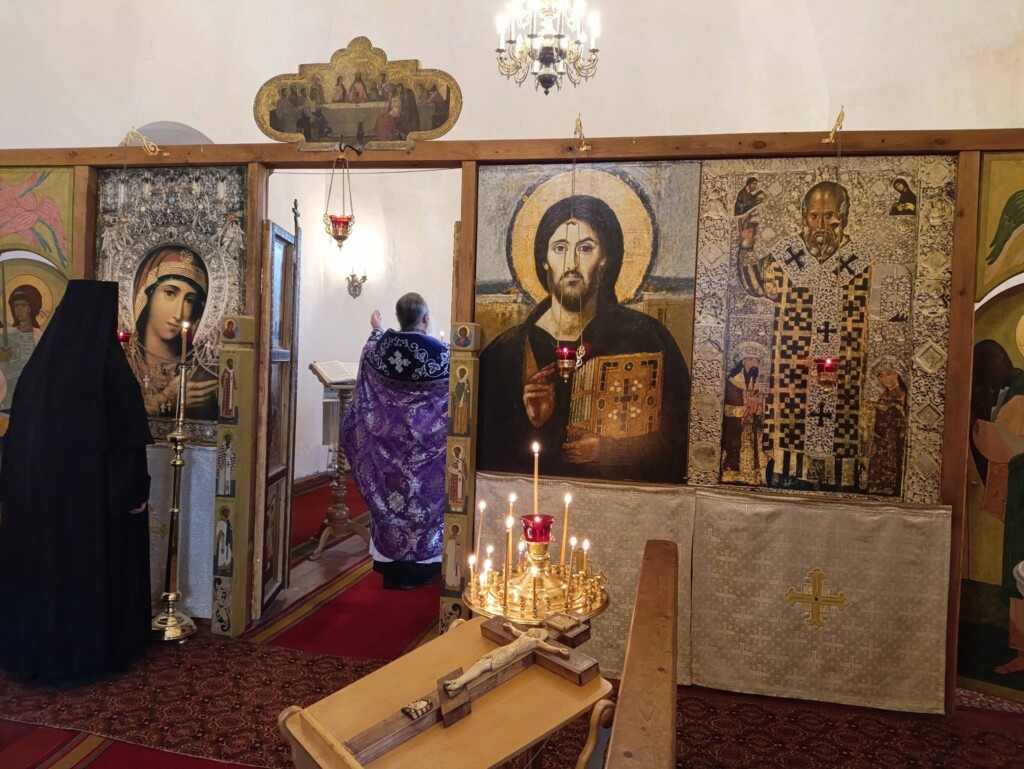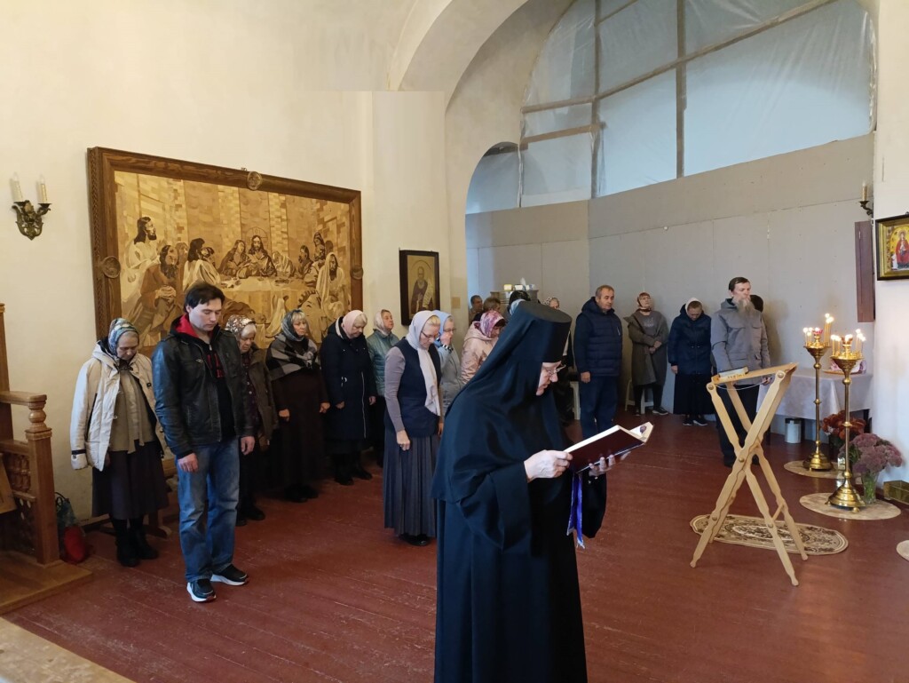28 сентября 2025 года, в Неделю 16-ю по Пятидесятнице, день попразднства Воздвижения Честного и Животворящего Креста Господня и празднование обретения св. мощей первомученика архидиакона Стефана, на подворье обители состоялось воскресное богослужение, которое совершил священнослужитель монастыря протоиерей Серафим Хайруллин.