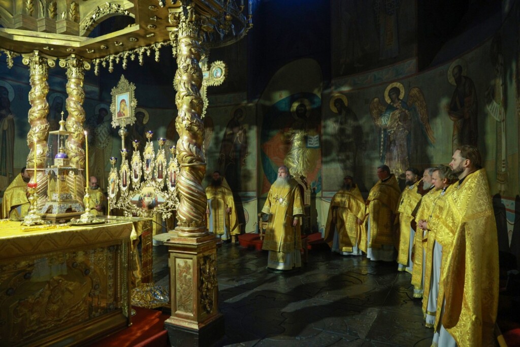 Его Высокопреосвященству сослужили заместитель председателя Синодального отдела по монастырям и монашеству, наместник Саввино-Сторожевского ставропигиального мужского монастыря архимандрит Стефан (Тараканов), наместник Андреевского ставропигиального мужского монастыря игумен Дионисий (Шлёнов), насельник Свято-Троицкой Сергиевой лавры архимандрит Агафадор (Маркевич), благочинные Донского и Даниловского церковных округов Москвы, столичное духовенство, братия обители в священном сане.