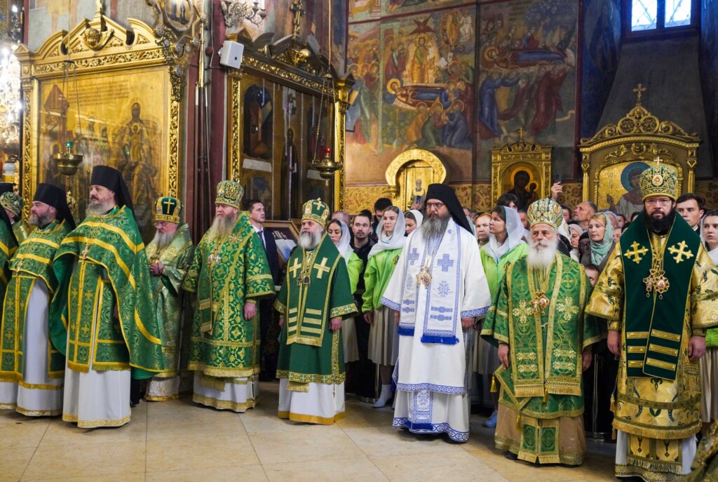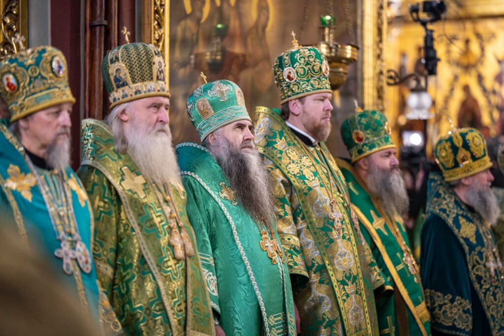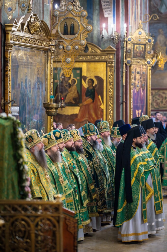 В соборе молились архиереи, настоятельницы женских монастырей, священнослужители, монашествующие и паломники, прибывшие на торжества в Троице-Сергиеву лавру.
