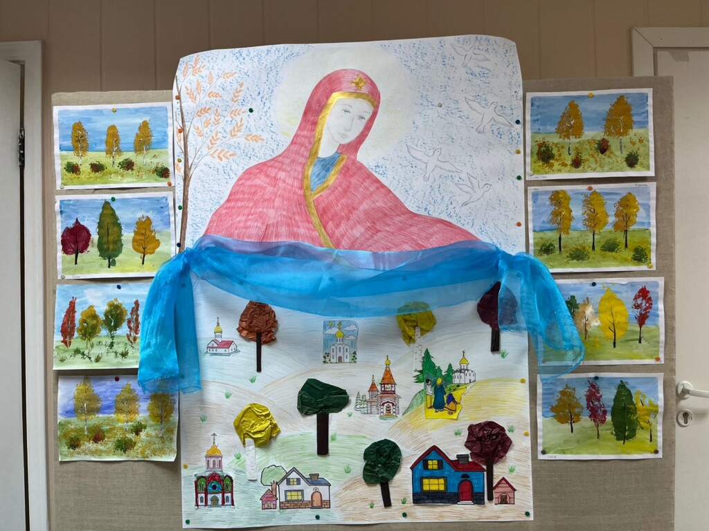 12 октября 2025 года, в воскресенье, учащиеся монастырской воскресной школы (воскресной группы) для детей продолжили готовиться к празднику Покрова Пресвятой Богородицы. На стенде, рядом с изображением Царицы Небесной, они разместили свои работы, которые изготовили под руководством преподавателей. Всегда радостно, когда творчество ребят такое светлое и прекрасное, когда они прославляют Господа и Его Пречистую Матерь делами своих рук!