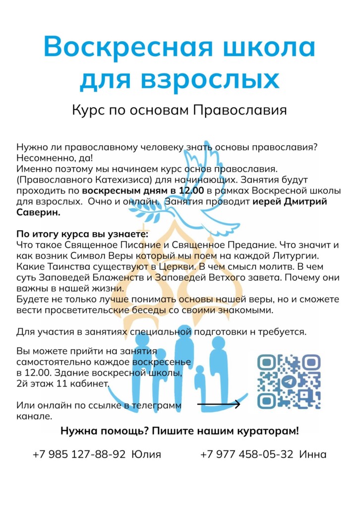 В нашей воскресной школе для взрослых сегодня начинается Курс по основам Православия!