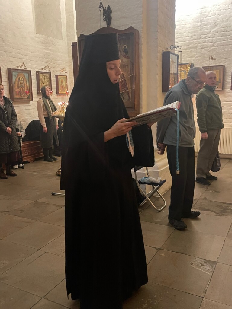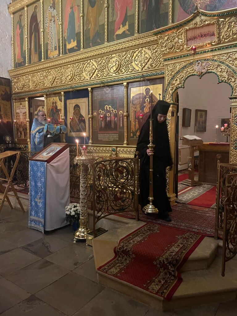 Накануне вечером было совершено всенощное бдение. Утром Божественную Литургию совершил священнослужитель монастыря протоиерей Серафим Хайруллин.