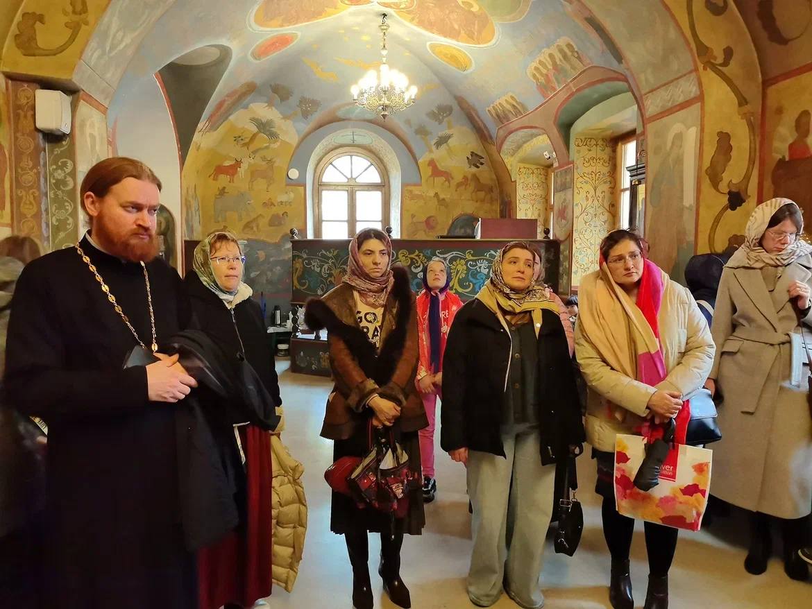 Паломников встретила благочинная монастыря и провела для них экскурсию, рассказав об истории, храмах и святынях обители.