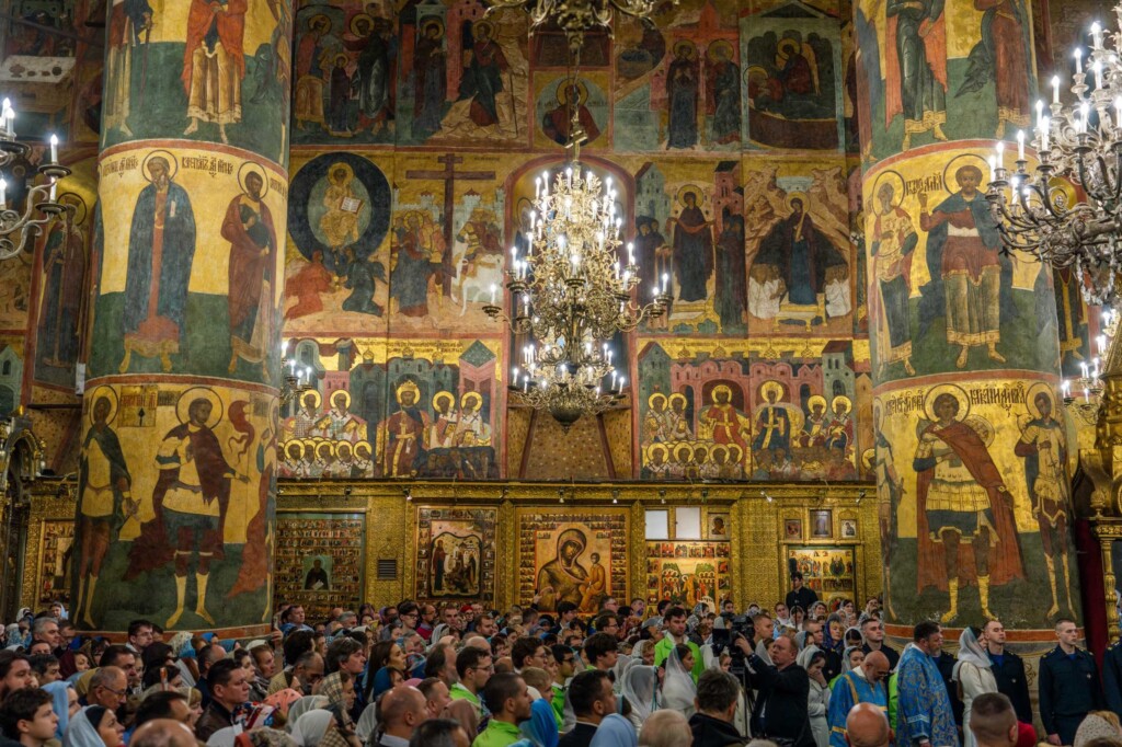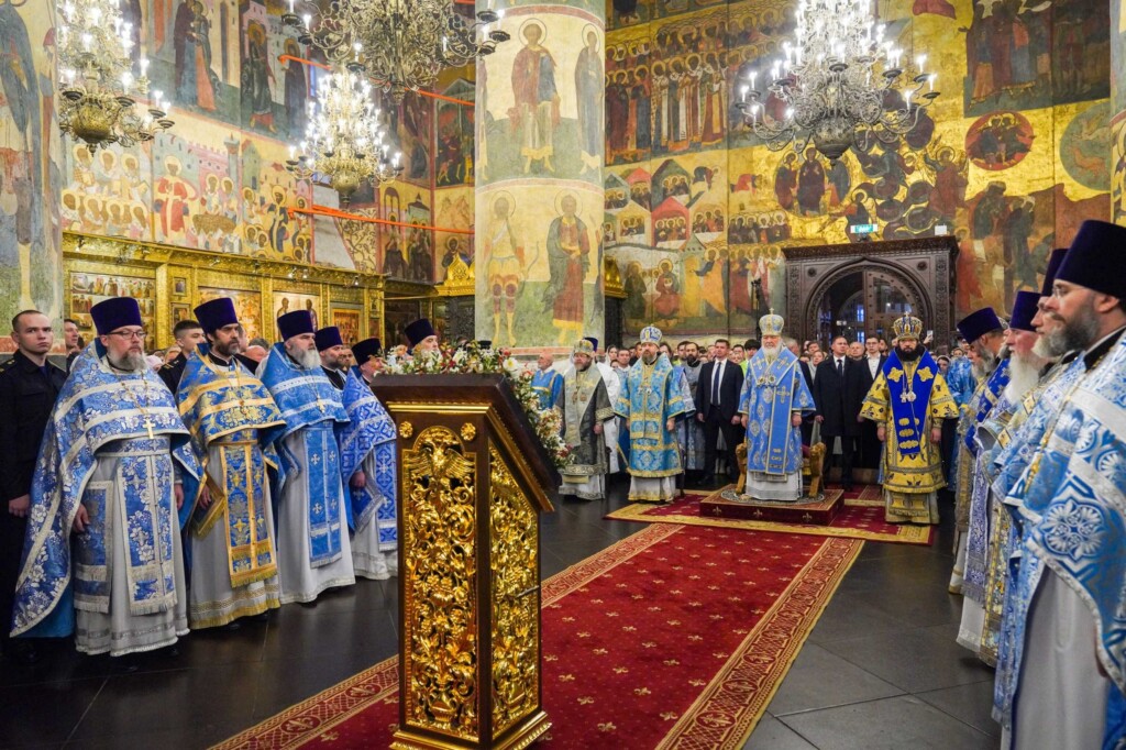 Еще раз поздравляю вас с этим замечательным праздником! Вспоминая героические страницы жизни народа и Церкви, нельзя не возблагодарить Господа за всё — за то, что мы прошли как народ, за то, что мы выжили в тяжелейших условиях войн, за то, что мы сохранили веру православную во времена страшных, не знающих прецедента, гонений, и за то, что мы снова с вами собираемся в центре нашей Родины, в этом соборе всея Руси, в Успенском соборе, чтобы прославить имя Господа и Спасителя нашего и возблагодарить Пречистую Царицу Небесную за Ее милость, за Ее Покров над страной нашей и над всеми нами. С праздником, мои дорогие! Храни вас Господь и Матерь Божия!