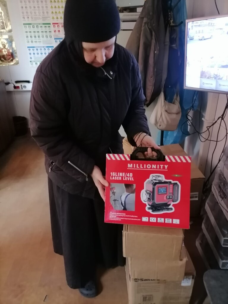 В помощь вошли: лазерный уровень, духовой шкаф, наборы по 186 инструментов, средства личной гигиены - влажные салфетки и др., 62 банки растворимого кофе и многое другое. Все необходимое было приобретено по просьбам воинов, поступающих с передовой.