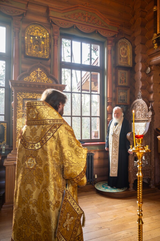 В этот день Предстоятель Русской Православной Церкви молился за Божественной литургией в храме благоверного князя Александра Невского в одноименном скиту близ Переделкина.