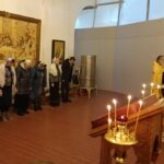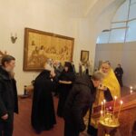 Великую вечерню с литией и утреню совершил священнослужитель монастыря протоиерей Серафим Хайруллин. За богослужением молились трудящиеся на подворье сестры и наши прихожане, которые смогли в рабочий день приехать на праздничную службу.