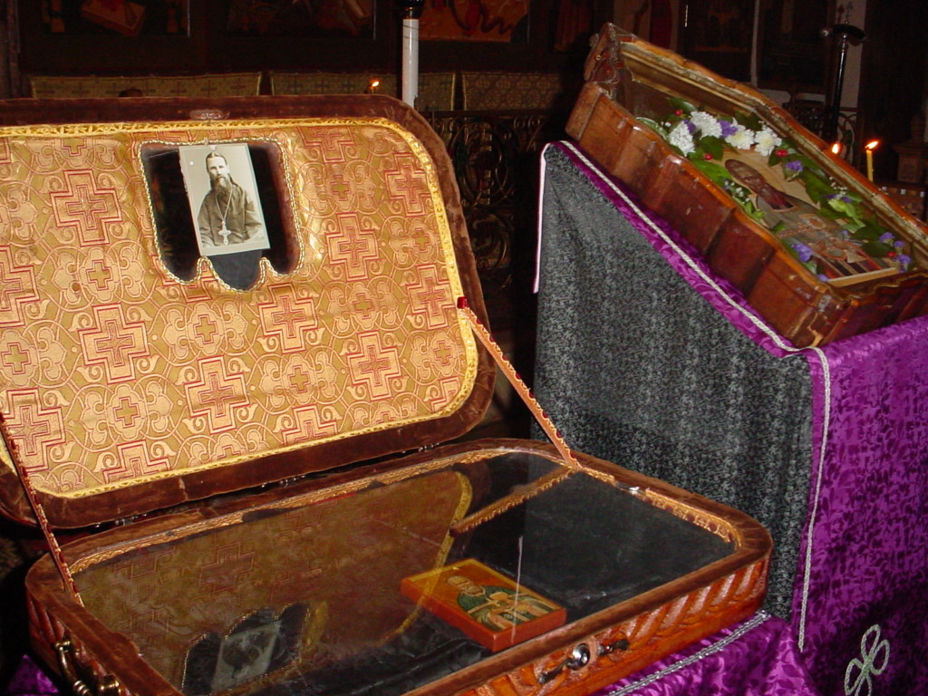 Во время молебного пения святому праведному Иоанну Кронштадтскому. Ряса св. прав. Иоанна в нашей обители. 2008 г.