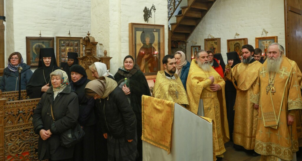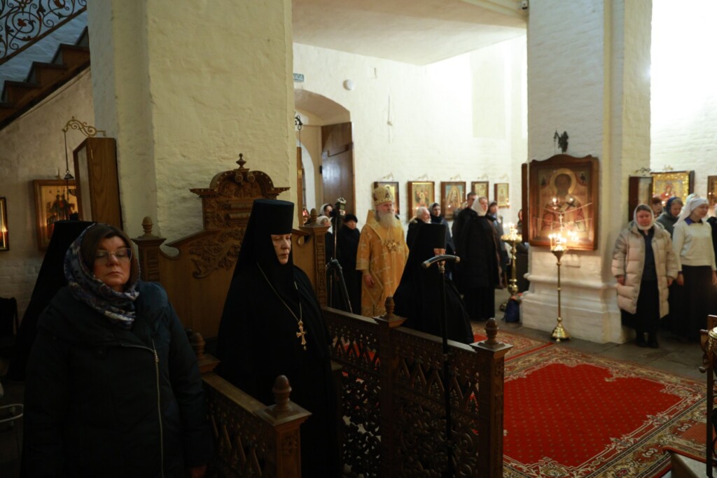 За богослужением молились: настоятельница монастыря игумения Викторина (Перминова); заведующая канцелярией Синодального отдела по монастырям и монашеству Г.В. Филиппова; сестры и прихожане обители.