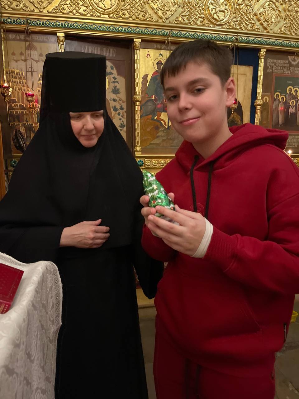 По завершении богослужения, сестры обители, по благословению Матушки Игумении, поздравили детей с праздником Рождества Христова.