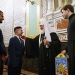 От лица православной молодежи столицы Святейшего Владыку поздравили участники православного молодежного объединения «Лествица» при храме Всех святых на Соколе г. Москвы Майя Ермолова, Евгений Доронин, Александр Шустов и Мария Коростылева.