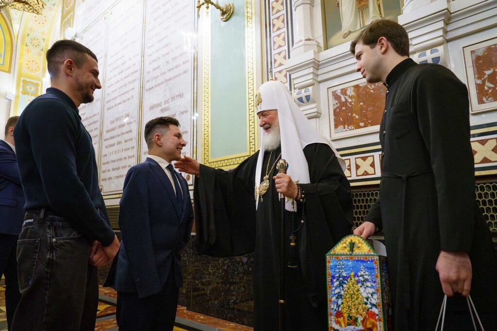 За алтарем состоялась беседа Святейшего Патриарха Московского и всея Руси Кирилла с Виктором Коноваловым из г. Миллерово Ростовской области. Виктор — ребенок-инвалид, он родился в 2009 году без рук, родная мать от него отказалась. На воспитание взяла Наталия Ивановна Музенитова, в ее семье 5 родных и 44 приемных ребенка. Виктор — многократный чемпион Ростовской области в различных спортивных дисциплинах в своей возрастной категории — трехкратный чемпион по плаванию, пятикратный чемпион по каратэ; поет на клиросе в храме великомученика и целителя Пантелеимона г. Миллерово (Шахтинская епархия). Святейший Патриарх Кирилл побеседовал с Виктором, благословил и передал подарки.