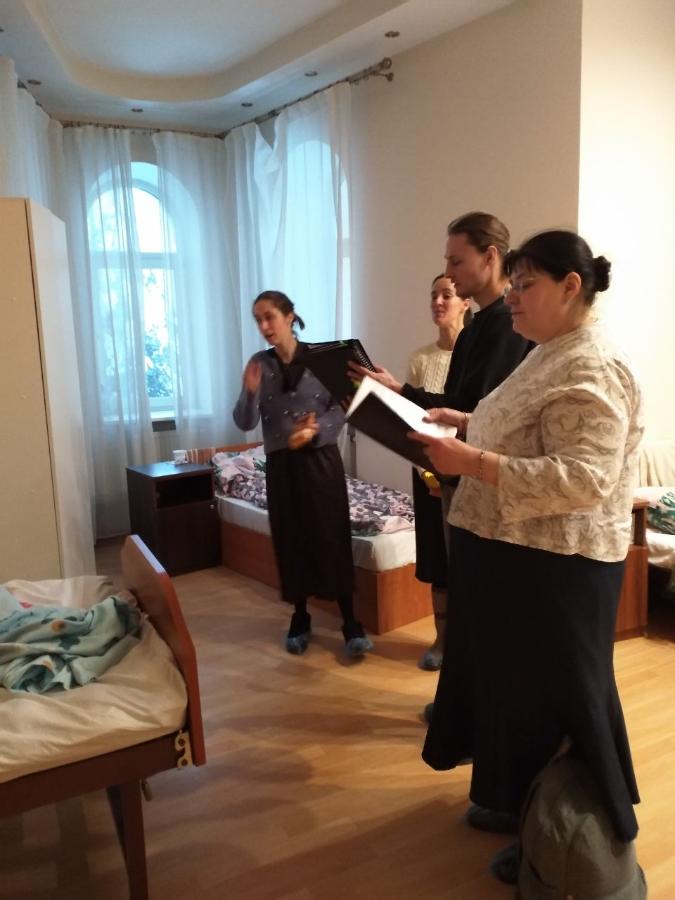 Самым главным подарком для нас были радостные улыбки и неподдельная искренность прекрасных, замечательных людей, находящихся в холе и палатах пансионата. Очень приятной неожиданностью для нас стала возможность поздравить одну из жительниц пансионата, Фаину с ее днем Рождения, ей исполнилось 90 лет. Вместе прославили Бога и возгласили многолетие имениннице.