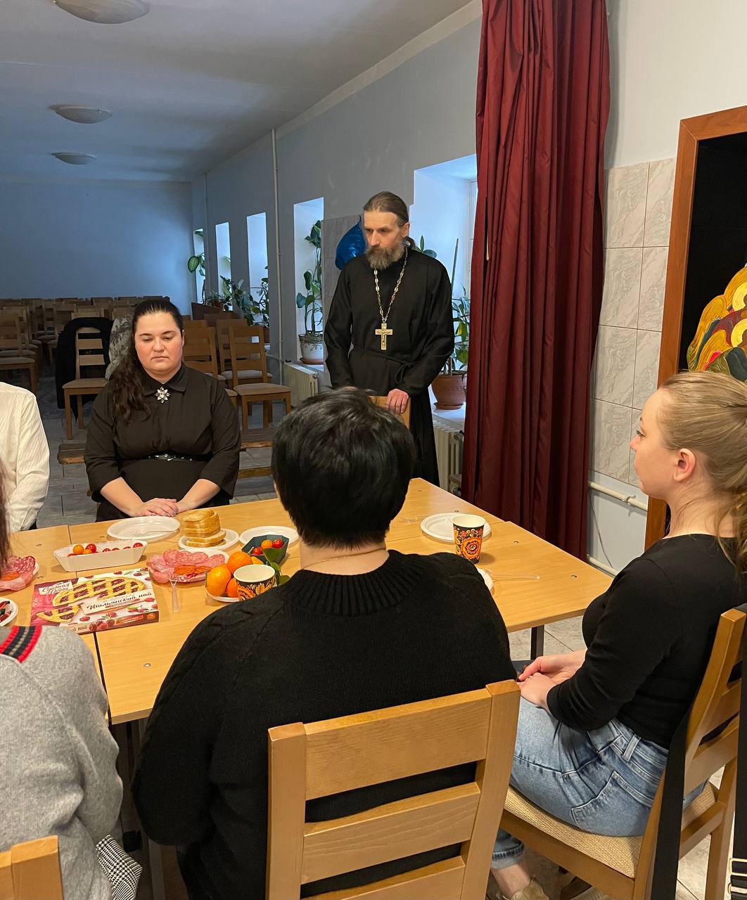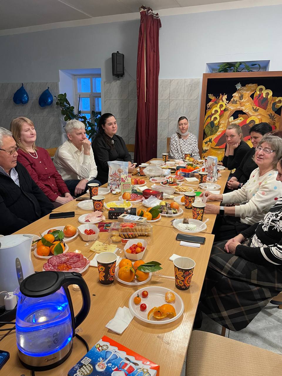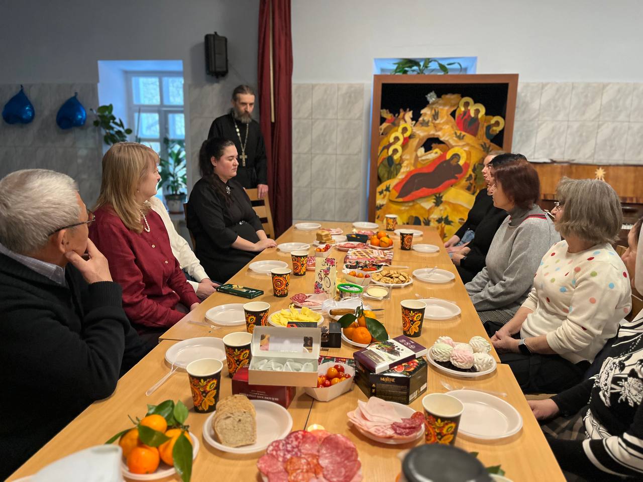 9 января 2026 года в Культурно-просветительском центре нашей обители прошёл Святочный вечер. За приготовленным праздничным угощением собрались наши прихожане вместе со священнослужителем монастыря иереем Димитрием Комаровым, чтобы разделить праздничную радость и прославить Христа Рождшегося.