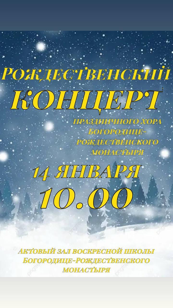 Завтра, 14 января 2026 года, в 10:00, в нашем монастыре состоится Рождественский концерт хора обители. Приглашаем всех желающих на наш концерт!