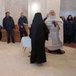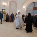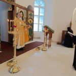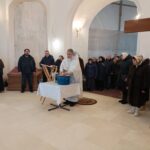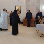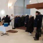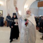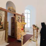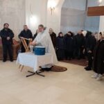 В этот день, по традиции, освященной водой был окроплен храм, монастырские помещения и места несения послушаний.