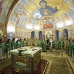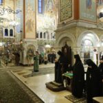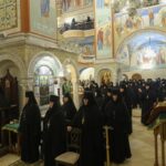 За Литургией молились заместитель председателя Синодального отдела по монастырям и монашеству, настоятельница Зачатьевского ставропигиального женского монастыря игумения Иулиания (Каледа), настоятельница нашего Богородице-Рождественского ставропигиального женского монастыря игумения Викторина (Перминова), игумены и игумении участники Рождественских чтений.