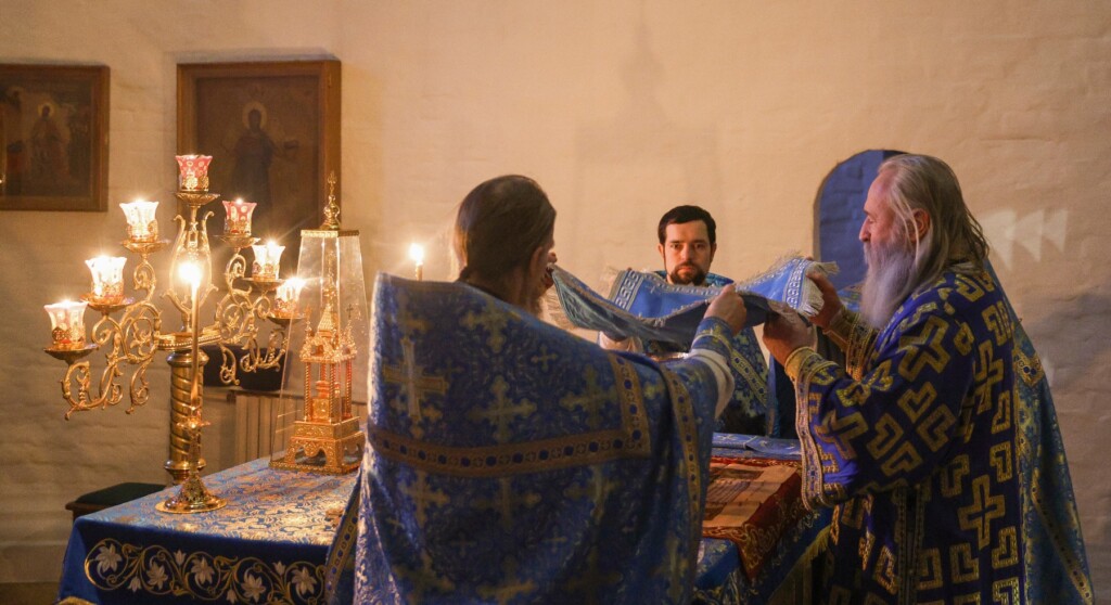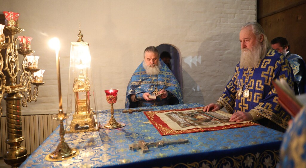 Его Высокопреосвященству сослужило монастырское духовенство.