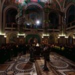 Богослужебные песнопения исполнили хор Сретенского монастыря под управлением Андрея Полторухина и хор Сретенской духовной академии под управлением чтеца Марка Качанкина.