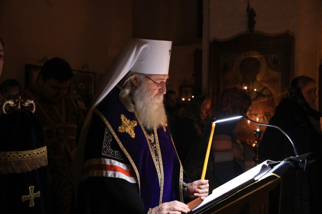 Вечером 25 февраля 2026 года, в среду первой седмицы Великого поста, председатель Синодального отдела по монастырям и монашеству, наместник Донского ставропигиального мужского монастыря митрополит Каширский Феогност совершил великое повечерие с чтением Великого покаянного канона преподобного Андрея Критского в нашем монастыре.