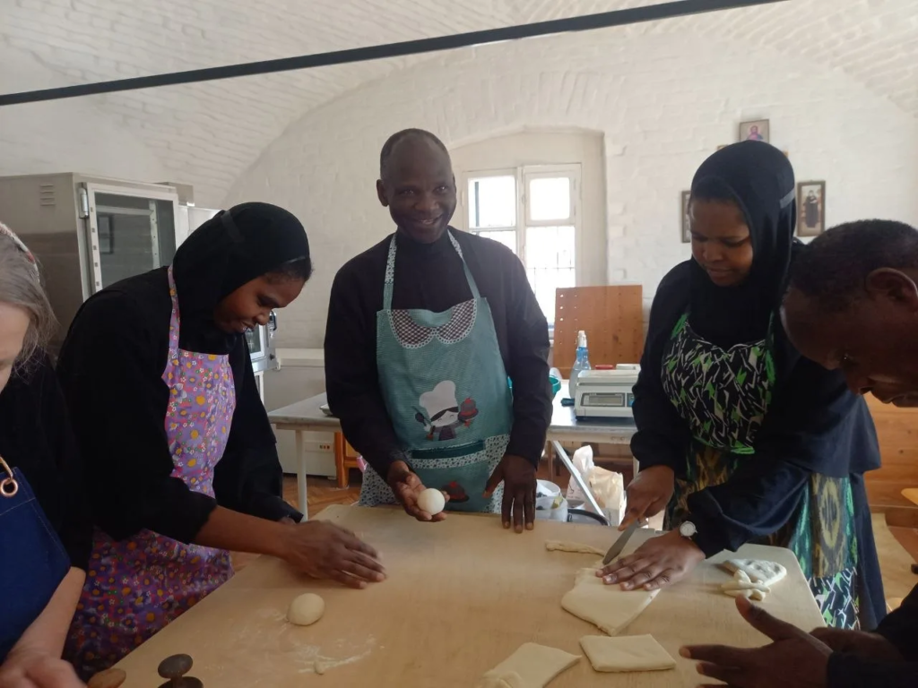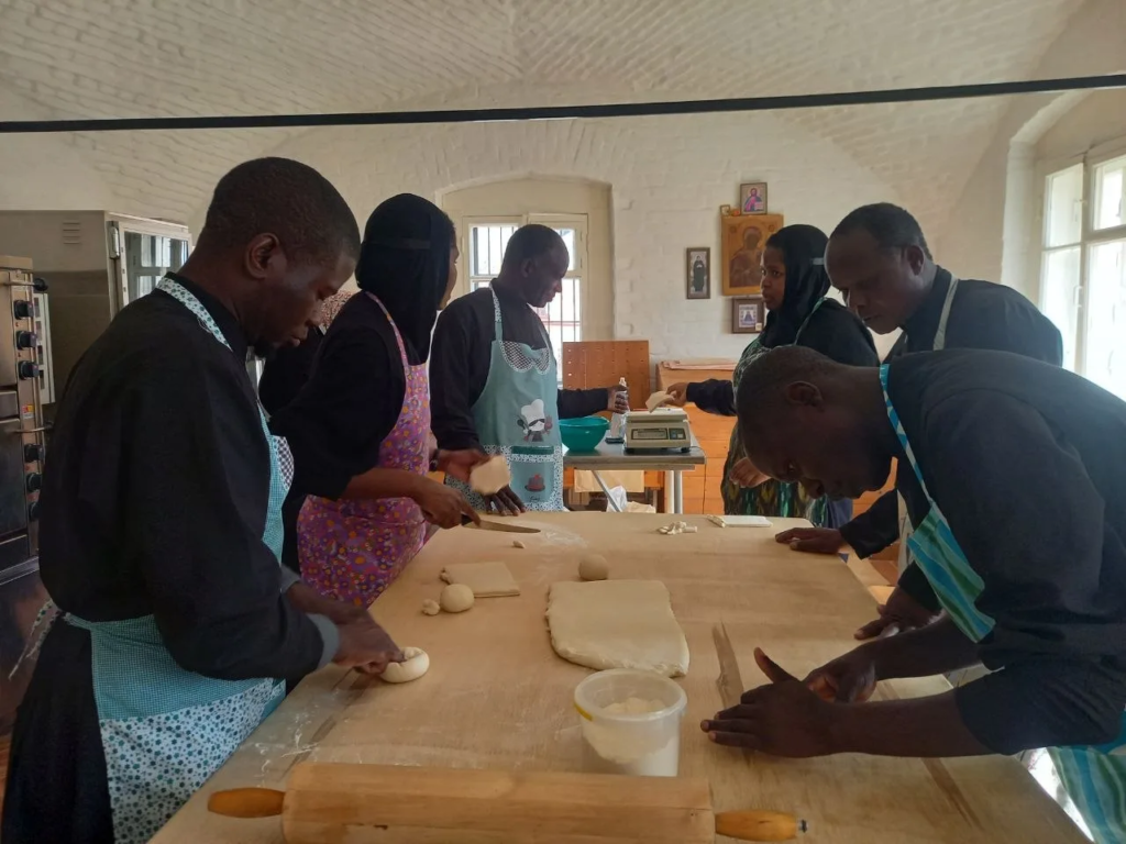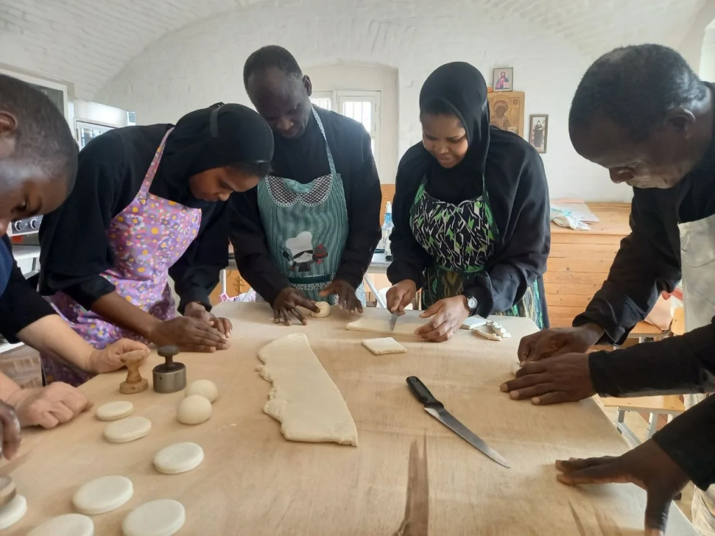 Занятия входят в практику, которую они проходят в нашем монастыре. Наших гостей обучали монахиня Матрона (Джепчирчир) и инокиня Вера (Анземо) из Кении, которые, в свою очередь, научились изготавливать просфоры в обители.