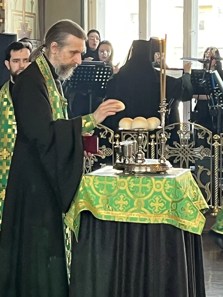 На утрени, после прочтения пятидесятого псалма, было совершено традиционное освящение верб.