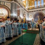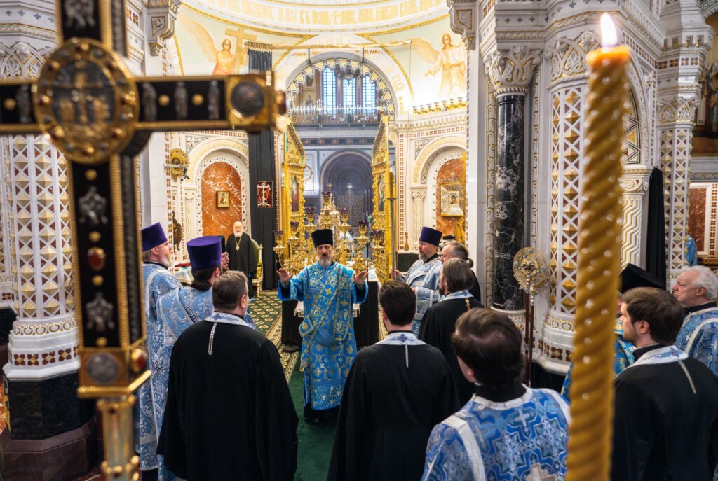 Хор духовенства Храма Христа Спасителя под управлением протоиерея Андрея Марущака исполнил величание празднику Благовещения Пресвятой Богородицы «Архангельский глас».