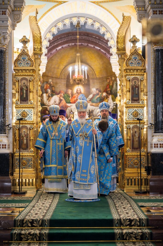 Его Святейшеству сослужили: митрополит Воскресенский Григорий, управляющий делами Московской Патриархии, первый викарий Патриарха Московского и всея Руси по г. Москве; епископ Раменский Алексий, личный секретарь Святейшего Патриарха Кирилла; протоиерей Михаил Рязанцев, ключарь Храма Христа Спасителя; духовенство г. Москвы.