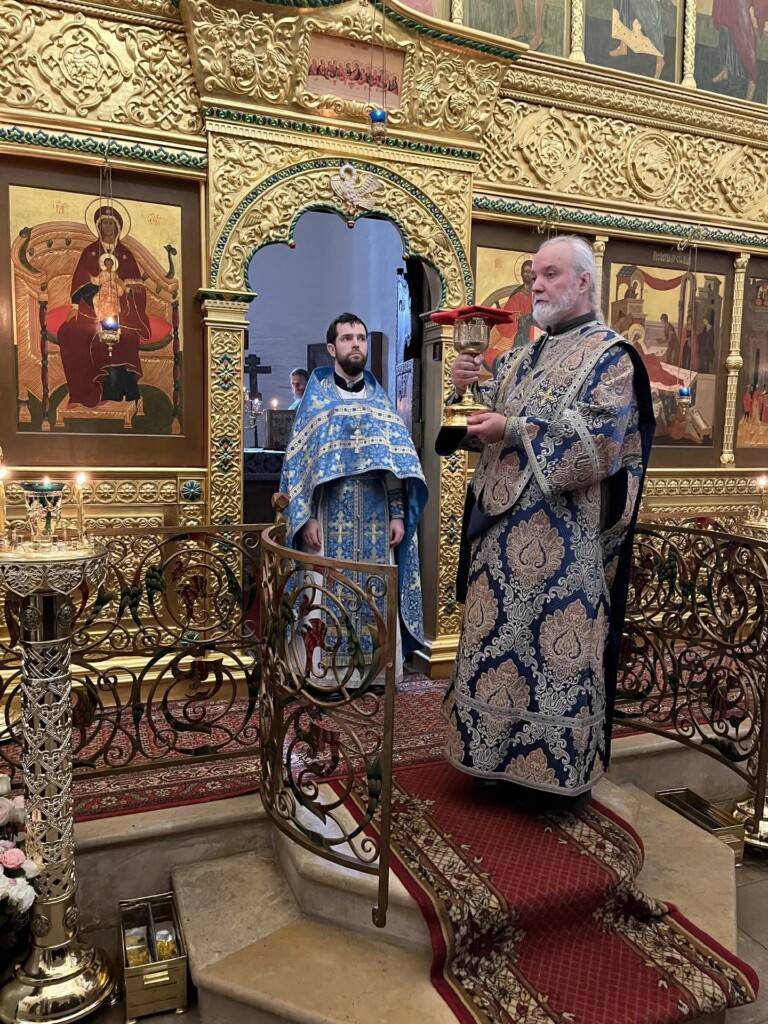Согласно церковному Уставу, после чтения часов, изобразительных и начала вечерни, была совершена Божественная Литургия святителя Иоанна Златоуста.