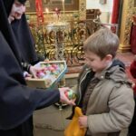Утром в обители состоялась поздняя Божественная Литургия. На эту службу традиционно приходят учащиеся нашей воскресной школы и бывает много детей. После службы детям вручили подарки от монастыря.